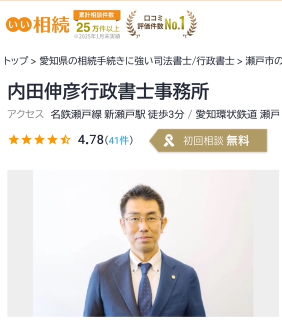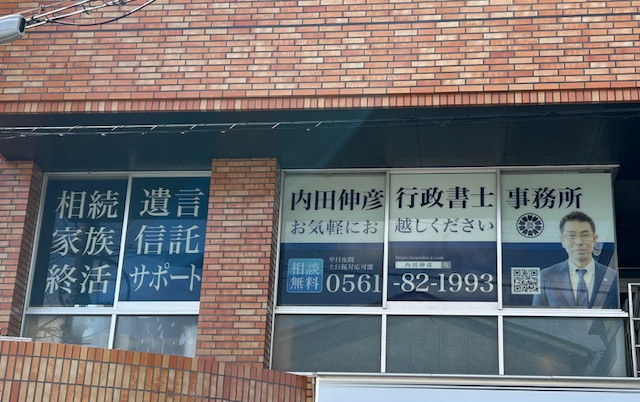当所は瀬戸市の新瀬戸駅の近くに事務所をかまえ、主に相続手続き、遺言書作成、家系図作成に注力している行政書士事務所です。